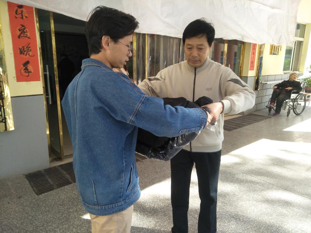 上午九点,志愿者们到达目的地后服从敬老院安排开始打扫卫生,经过一番认真打扫、擦拭及整理,敬老院楼道、餐厅、棋牌室的面貌焕然一新。接着,志愿者们又为老人们献上各自精心准备的歌舞、小品、诗朗诵等节目,赢得台下阵阵掌声,老人们也纷纷上台进行才艺展示,对我们的到来表示欢迎。在敬老院的小院里,老人们不时地拍手微笑,充满了欢乐笑语。表演结束后,志愿者们陪老人唠家常,听他们讲过去的生活。离开之前,志愿者们将棉大衣捐赠给敬老院,希望这些衣服能给老人们带去温暖,敬老院负责人代老人们对我们表示了感谢。