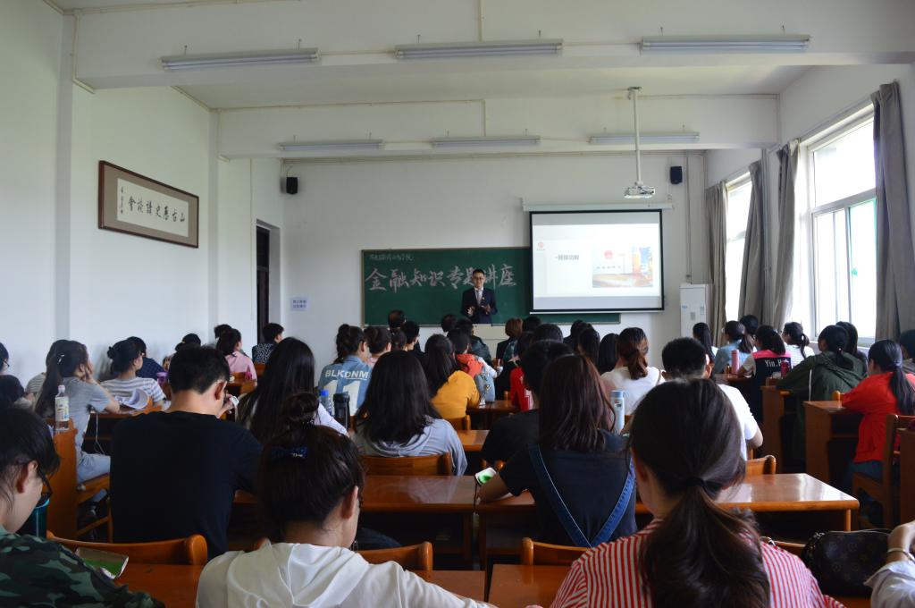 2018年04月20日上午10:00,中国银行翟世豪一行三人应公司之邀请,在01402教室作了金融知识专题讲座。出席本次活动的有公司党委副书记段旭杰老师,院团委书记阎海燕老师,15级辅导员李建军老师。会议由阎海燕老师主持,公司各班团干部、宿舍长参加了此次会议。