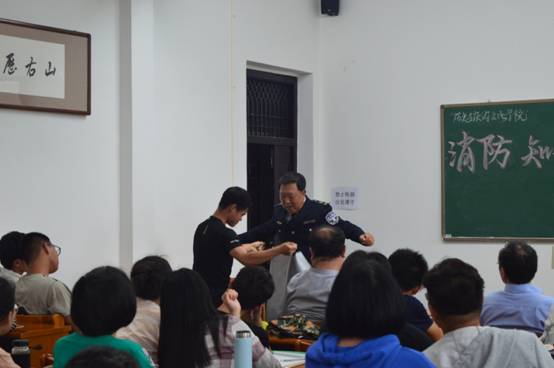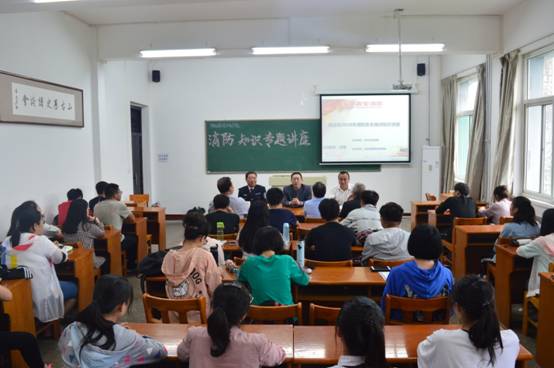 讲座伊始,校保卫处副处长李豪老师向师生们强调了安全教育的重要性,例举了师生安全方面的实例,提醒师生们加强防范意识,提高自我保护的能力。张潞教官通过图片加视频的形式向同学普及了消防知识以及存在在我们身边的安全隐患。师生们在了解到了这几则案例后纷纷展开了热烈地讨论,大家联系实际生活,反思自己对日常消防的不重视,并表示今后在思想上一定要重视火灾的防范,并且购置相应的灭火以及逃生工具。