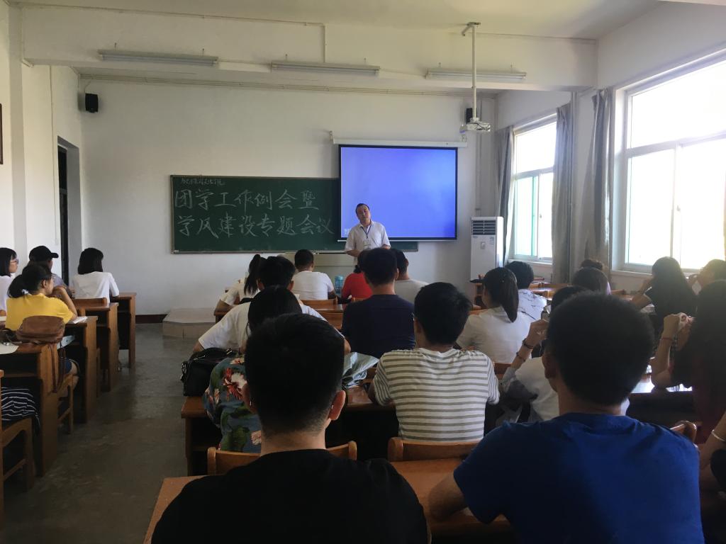 2018年9月4日中午,db旗舰在01402召开了新学期第一次团学工作例会暨学风建设专题会议。参加会议有大二、大三各班班长、团支书,员工会、团委、青协主要成员,公司党委副书记段旭杰老师、院团委书记阎海燕老、,会议由院团委书记阎海燕老师主持。