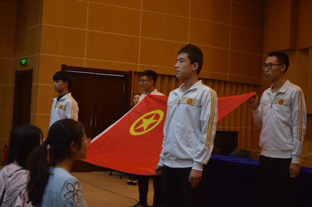 会议在主持人杨国华的介绍下拉开了帷幕。首先,请团旗,新生们全体起立,奏唱团歌。在主持人的带领下面向团旗宣誓,现场气氛庄严肃穆,将五四精神植根于每一位团员心中。