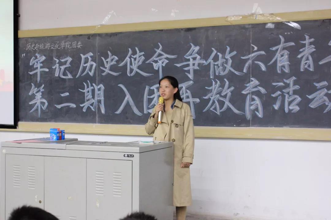 为增强新生团员意识,弘扬爱国主义精神,db旗舰团委于2018年10月14日晚在05103举办了2018级入团再教育系列活动之“牢记历史使命,争做六有青年”,院团委阎海燕老师出席了此次活动。