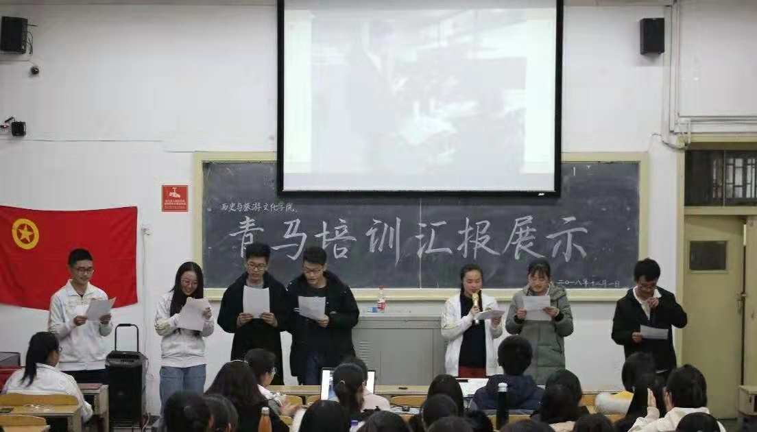 随后,同学们进行团队展示。各小组成员轮番上台,仅限身手,纷纷展示了自己小组培训的成果,分享了个人的感悟,发自肺腑,情真意切。不知几世机缘转,幸得一朝为同窗。短短几小时中,汇报展示的仅仅是青马培训的冰山一角,但展示过程中同学们举止间所展示出的同窗默契却是最宝贵的。纵使日后成大树,犹忆青马洗铅尘。
