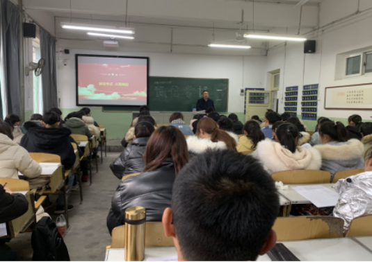 首先,侯慧明老师强调同学们要认真复习,积极备考,劳逸结合。接着,他重申考场纪律,告诫大家要坚守底线,坚决不要做出违反校规校纪的事,诚信考试。最后,侯慧明老师表达了对大家新一年的期许,希望同学们在期末中都能取得好的成绩,在新的一年有所新收获。