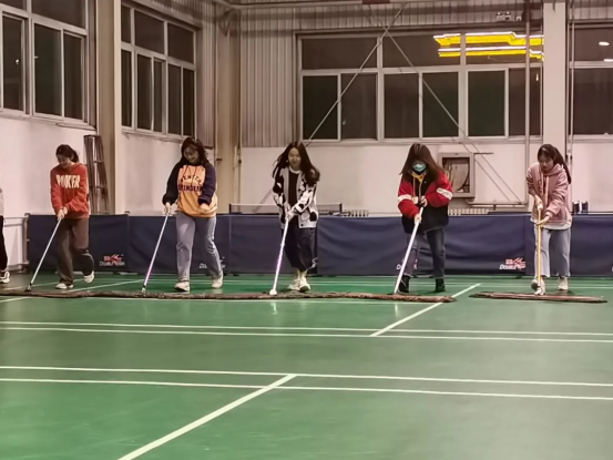 晚上八时十五分,八名志愿者准时在员工活动中心门前集合,领取清扫工具之后开始清扫活动。为保证此次清扫服务活动的顺利进行,志愿者们根据活动中心的实际情况进行了合理分工:八名同学共分为两组,第一组同学负责常规清扫活动;第二组同学对活动场地挡板进行调整。清扫结束之后,志愿者们依次归还打扫工具。本次活动在同学们认真负责之下圆满完成。