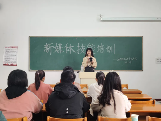 会议伊始,邢怡然同学介绍了融媒体中心主要工作,对图文制作、拍照标准和技术进行讲解,并演示了相机操作,指导大家正确使用相机。随后,魏诗涵同学向全体成员讲解了如何制作图文首页,她强调要态度认真、仔细方可做好图文制作工作。至此,本次技能培训会圆满结束。