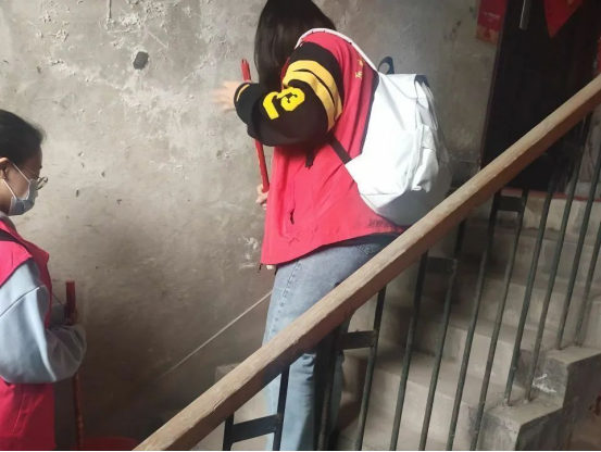 上午十一时四十分,志愿者们在青协办公室门口集合完毕,在青协负责人的带领下前往家属楼并领取了清扫工具。为保证清扫活动有序开展,负责人根据家属楼的实际情况对志愿者们进行了分组:第一组同学负责清扫家属楼中每层楼梯上的灰尘和垃圾;第二组同学负责擦洗走廊栏杆以及清除小广告。清扫过程中,志愿者们态度认真,互帮互助。在这样团结合作的氛围里,家属楼打扫工作顺利完成。最后,志愿者们有序归还工具并合影留念。本次清扫活动圆满完成。