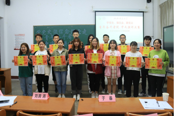 活动伊始,主持人巴燕简要介绍比赛规则并宣布比赛开始。随后,各位参赛选手依次上台进行演讲,评委们就参赛者的表现情况进行打分。比赛中,选手们精神饱满、感情充沛,紧扣演讲主题,围绕党的百年征程,或用中文或用英文为大家带来了一场又一场富有感染力的演讲。演讲结束后,刘漪娟评委进行活动总结,主持人宣布比赛结果并向获奖同学们表示祝贺。