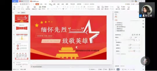 还未开学的各团支部通过视频会议在线上开展活动,同学们通过PPT、纪录片、新闻报道等方式与途径,了解了烈士纪念日,体会了烈士精神,并对为祖国抛洒过热血的烈士们缅怀致意。
