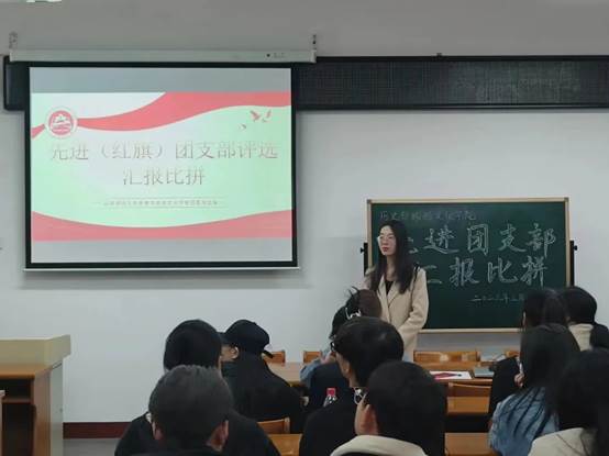本次汇报由2001、2101、2102、2104和2105班五个团支部参与汇报评选,最终选出一个红旗团支部,两个先进团支部。汇报中,各班汇报人围绕本班团支部政治建设、组织生活、联系服务和作用发挥四个方面进行汇报,展示了各自的班级特色与活动风采。之后,代老师、张晴雯和靳宇茜依次点评并指出各自的优秀之处与不足之地,希望各团支部能够不断创新,及时改进工作方式,开展更多的特色活动,丰富同学们的生活。最后,参会人员根据各支部的汇报情况进行投票,再经过最终讨论综合考量,2104班团支部当选为红旗团支部,2001班团支部和2105班团支部当选为先进团支部。