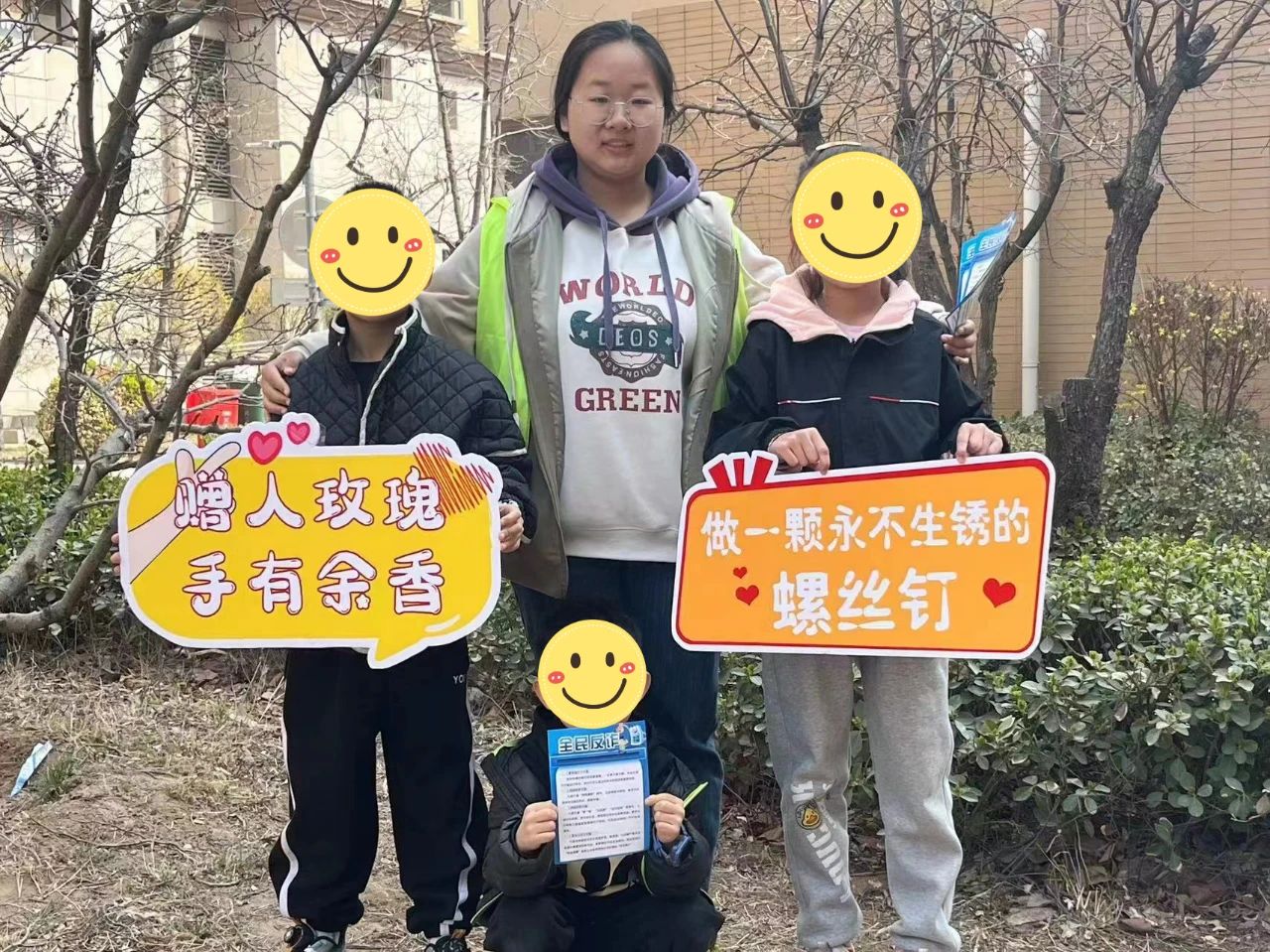 上午11时,志愿者在校门外辰兴雅郡小区准时集合。青协成员首先进行反诈宣传,将提前准备好的反诈宣传手册在社区内分发给老年人群体、儿童群体以及其他社区人员,向他们普及反诈知识。随后,青协成员进一步细化分工,对社区内的小广告、小区路旁绿化带中的垃圾进行清理,并擦拭社区宣传板。在成员们的共同努力下,社区环境焕然一新。活动结束后,全体成员归还活动道具并进行合影留念。