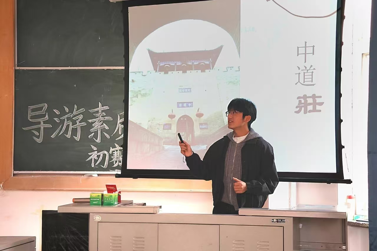 比赛分为“导游大赛”组和“蒲剧文化旅游线路设计”组。比赛过程中,选手们对模拟景点进行讲解,通过生动的语言,得体的肢体动作、表情和适当的互动,将观众带入虚拟的旅游场景中。他们详略得当、风格多样的讲解使比赛现场气氛热烈,观众掌声不断。参赛者之间的相互鼓励,展现了良好的竞技精神和团队精神。赛事最后,评委们对选手们的精心准备表示了肯定,并认真点评了每位选手的优缺点,鼓励同学们继续提升自我,在实践中不断提高自身综合素质。