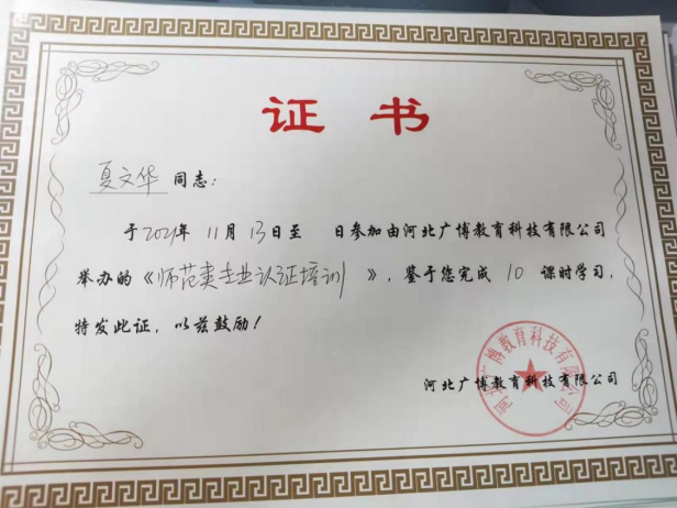 11月13日,公司教学副经理仝建平和骨干教师夏文华、鲁靖康、谢耀亭、王宝龙五位参加师范专业认证专题培训。
