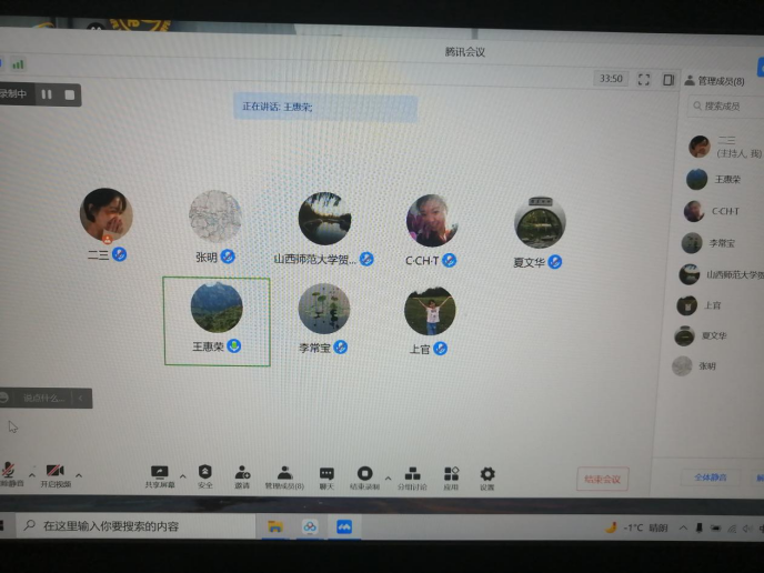 公司中国近现代史课程组于2021年11月22日以腾讯会议的形式对历史学专业本科人才培养方案组织了一次讨论会,参会人员有王惠荣老师、李常宝老师、上官定一老师、夏文华老师、贺文乐老师、曹春婷老师和张明老师,课程组就历史学人才培养方案展开讨论,建言献策。