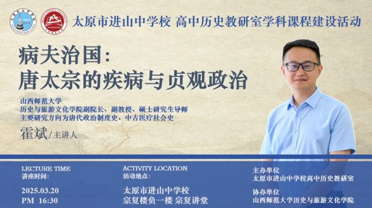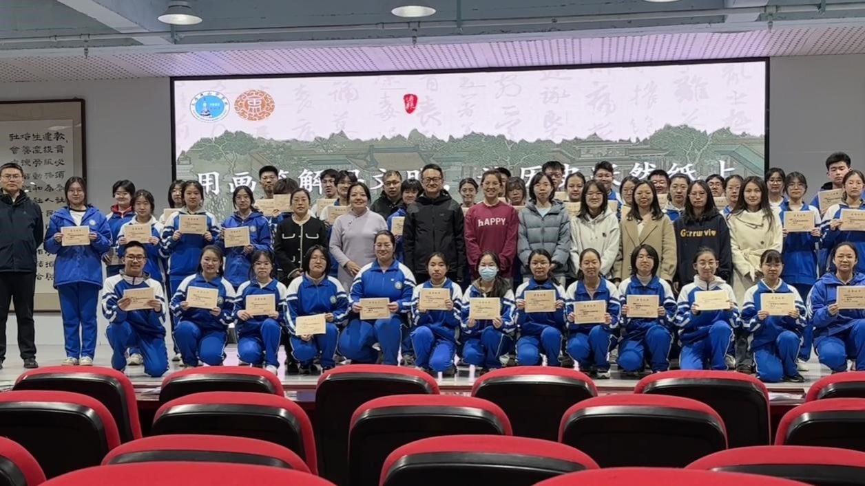 霍斌老师为进山中学历史教研室的老师和公司实习生做了题为《病夫治国:唐太宗的疾病与贞观政治》的专题讲座,介绍了疾病医疗史、情感史、身体史相关的研究前沿动态。随后,参加了进山中学高中历史教研室联合禹贡研究社社团举办的“用画笔解码文明,让历史跃然纸上”成果展演活动,霍斌老师与进山中学历史教研室的老师们依次为获奖员工颁发荣誉证书,并与他们合影留念。