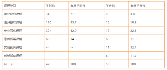 2.课程模块须修满的学分数为:学业规划2学分,通识基础10学分,专业强化10学分,素质拓展6学分,实践教育17学分,创新活动8学分。