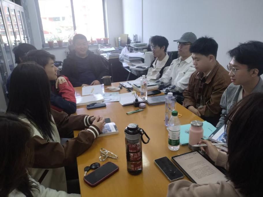 读书会伊始,卫老师抛出问题。同学们讨论,以慧能的“菩提本无树,明镜亦非台。本来无一物,何处惹尘埃”和神秀的“身是菩提树,心如明镜台。时时勤拂拭,勿使惹尘埃”这两首著名偈语引入话题,点明二者在心性本质认知上的差异。结合禅宗“心性论”相关理论,提出:神秀的观点强调通过不断地修行、拂拭内心的尘埃来达到心灵的纯净,这是一种渐修的方式;而慧能则直指人心,认为心性本就清净无染,无需刻意拂拭,这种顿悟的思想更能直达佛法的核心。这一观点立刻引发了成员们的热议,大家纷纷结合阅读过的禅宗典籍,剖析两种修行理念的本质区别。